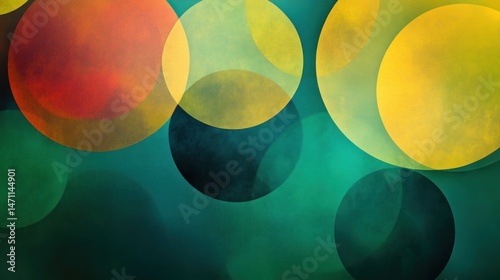 Harmonic spheres overlapping in teal and amber hues abstract design