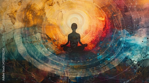 Harmonized masculine and feminine energies represented by a balanced light and dark aura around a meditating figure