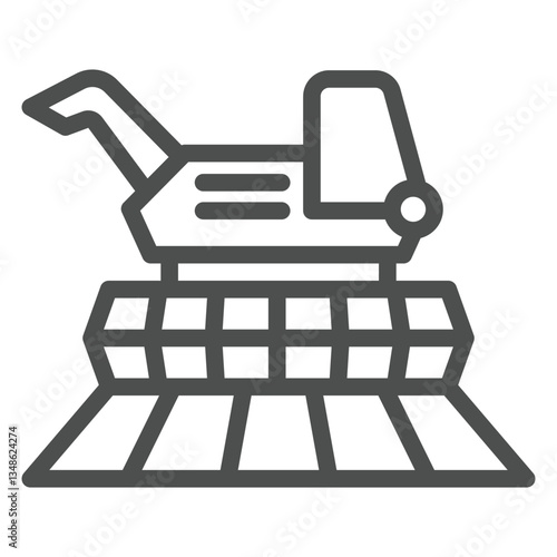 Harvester in field line icon, wheat production concept. Vector graphics. Wheat grain crop vehicle sign on white background, outline style icon for mobile or web design.