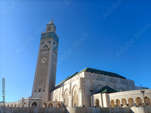 Hassan ii mosque standing tall under blue sky in casablanca, morocco