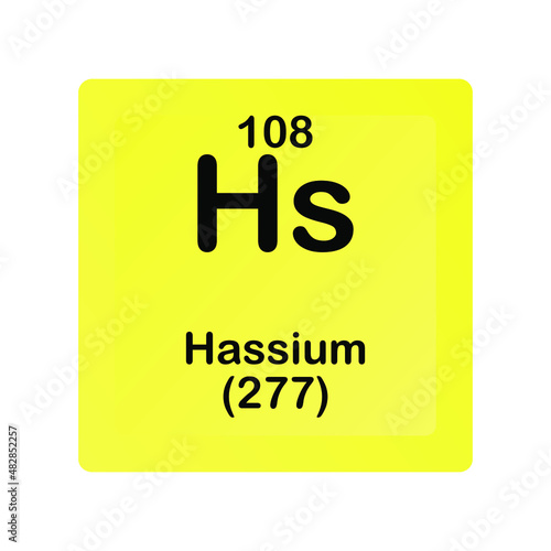Hassium Hs Chemical Element vector illustration diagram, with atomic number and mass. Simple flat dark gradient design for education, lab, science class.