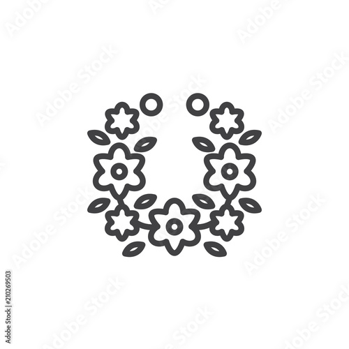 Hawaii flowers necklace outline icon. linear style sign for mobile concept and web design. Summer Tropical Necklace simple line vector icon. Symbol, logo illustration. Pixel perfect vector graphics