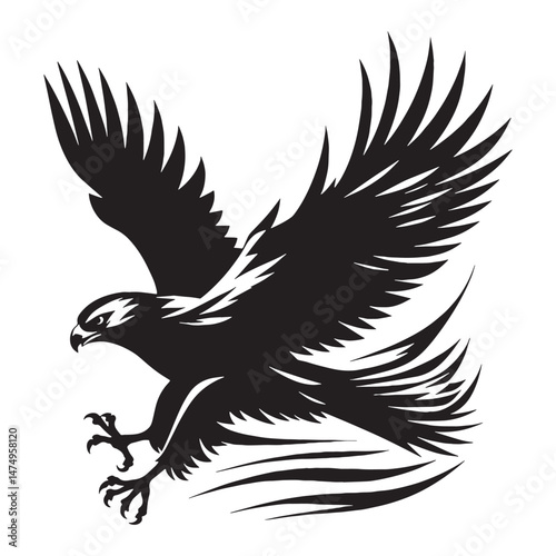 Hawk silhouette, agile and sleek in flight – Hawk illustration – Minimalist Hawk vector – Bird silhouette