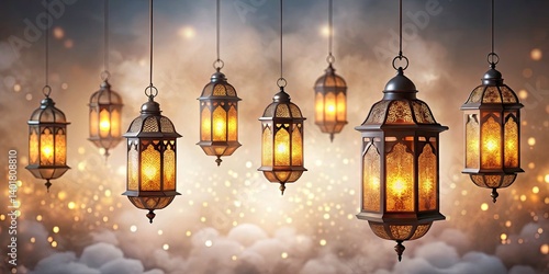 Hazy Lantern Glow Landscape Photography: Magical Night Scene, Illuminated Path, Misty Mountains, Serene Nature