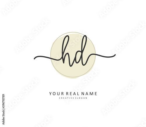 HD Initial letter handwriting and signature logo. A concept handwriting initial logo with template element.