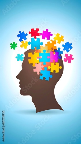 Head filled with colorful puzzle pieces