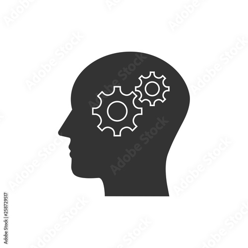Head, gear, solution idea icon. Vector illustration, flat design.