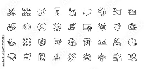 Headshot, Checklist and Globe line icons pack. AI, Question and Answer, Map pin icons. Business podium, Teamwork, Speech bubble web icon. Vector