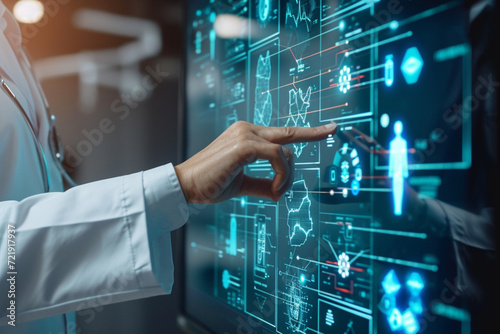 Healthcare Professional Analyzing Futuristic Digital Heart Data