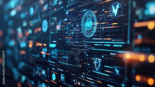 Healthcare technology solutions visualized with vibrant data, sleek interface, soft lighting, futuristic vibe