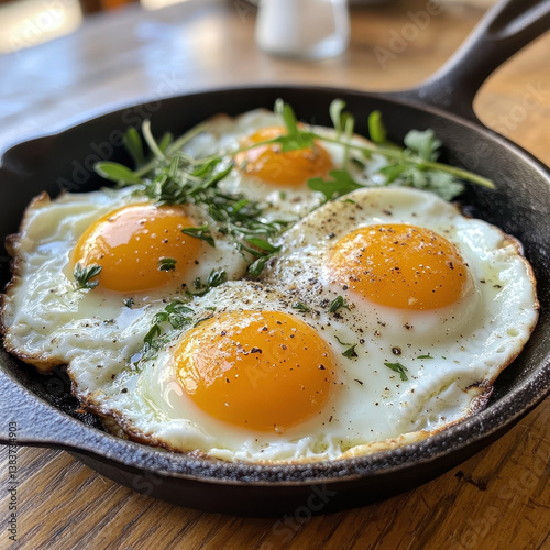 Healthy Breakfast with Fried Eggs, Avocado, and Fresh Fruits on Rustic Wooden Table
