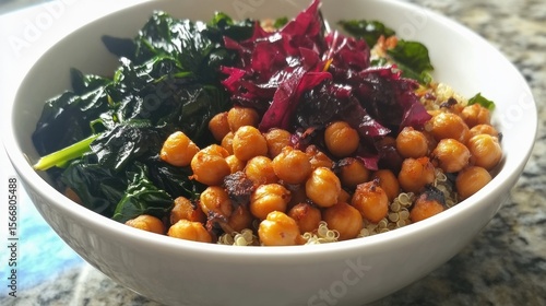 Healthy Quinoa Bowl with Spinach, Chickpeas, and Red Cabbage
