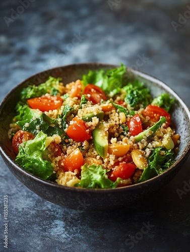 Healthy Quinoa Salad with Fresh Vegetables in Rustic Bowl Nutrition and Wellness : Generative AI