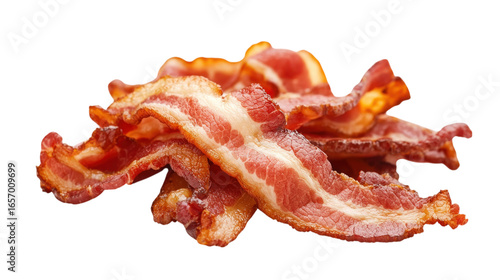 Heap of Fried Bacon Slices isolated on a Transparent Background
