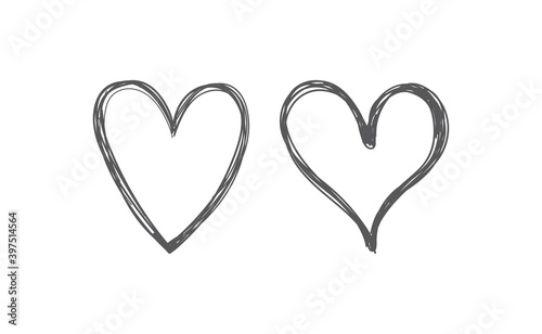 Heart doodles set. Hand drawn hearts collection. Valentine's day sketched design elements.