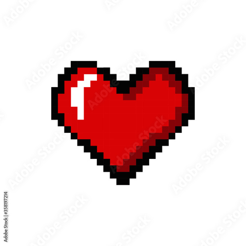 Heart icon - Pixel art heart. 8 bit style, dot red heart icon. Vector illustration.