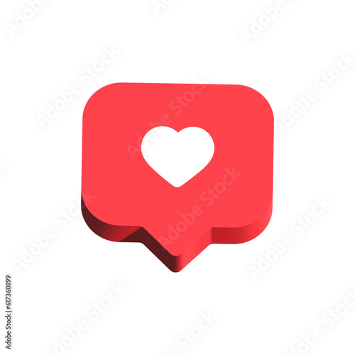 Heart in 3d speech bubble icon background. like heart social media notification icons 3d modern, love like chat bubbles social network post reactions - favorite hearts, 3d rendering, 3d illustration