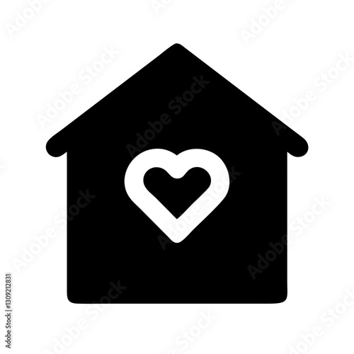 Heart in House Symbolizing Love and Home in Black Vector Design