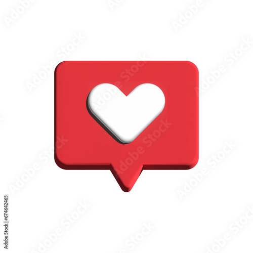 Heart in speech bubble icon. like heart social media notification icons 3d modern, love like chat bubbles social network