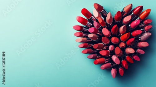 Heart of Fashion and Beauty An Array of Lipsticks Form a Symbol of Love on a Soft Blue Background