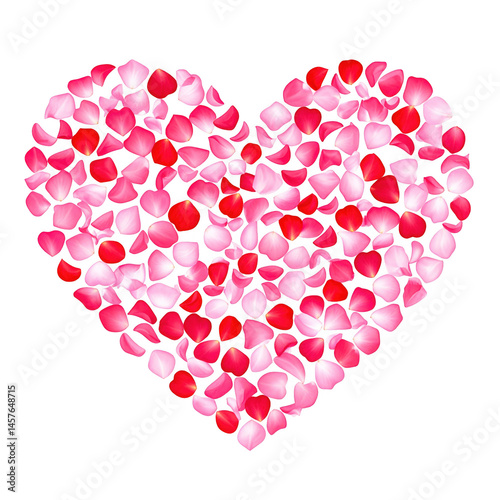 Heart Shape Made of Pink and Red Flower Petals on Black Background