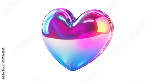 Heart shaped pink glass with romantic transparent design glossy surface and delicate decorative object isolated on white background