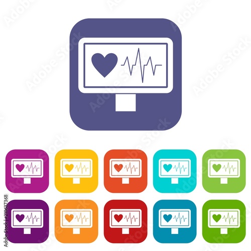 Heartbeat icons set vector illustration in flat style in colors red, blue, green, and other