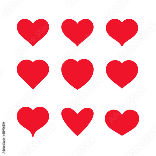 Hearts flat icons. Red icon on white background. Vector illustration.