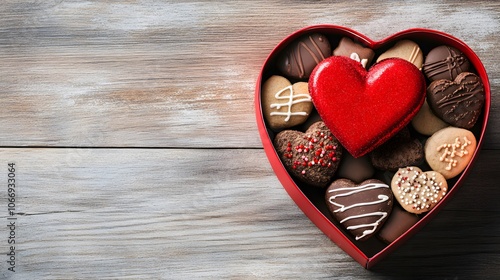 Heart-shaped box filled with assorted chocolates, perfect for gifting on special occasions.