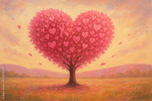Heart-Shaped Tree of Support with Pink Ribbon in Serene Landscape