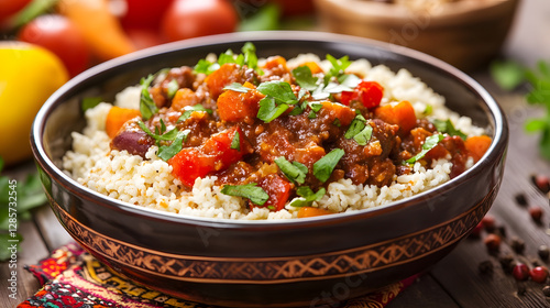 Hearty Vegan Chili Bowl with Mixed Vegetables and Rice for a Nutritious Meal : Generative AI