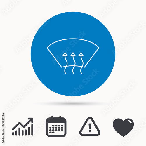 Heated window icon. Windshield arrows sign. Calendar, attention sign and growth chart. Button with web icon. Vector
