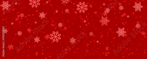 heavy snowfall, snowflakes in different shapes and forms. Many white cold flake elements on red background. White snowflakes flying in the air. Snow flakes, snow background christmas
