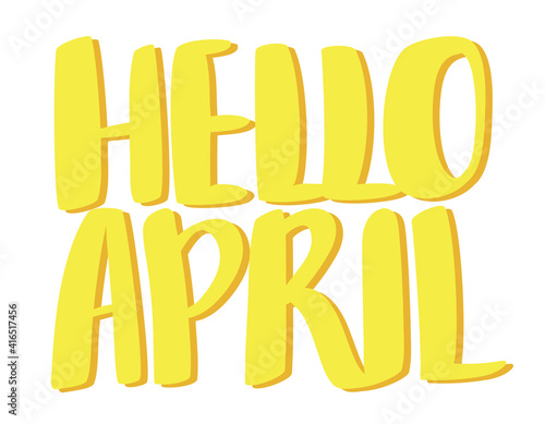 Hello April volumetric lettering. Beautiful hand drawn calligraphy.
