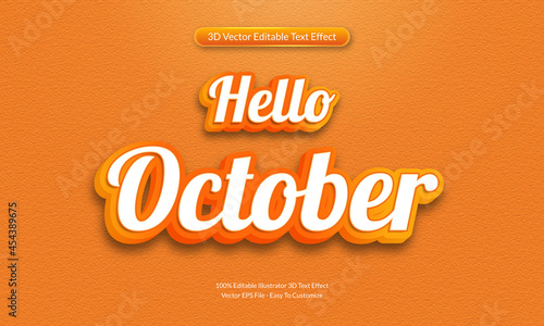 Hello October 3d editable text effect vector design template. Easy to use Multi Purpose, Premium Quality Creative Hello October 3d editable text effect.