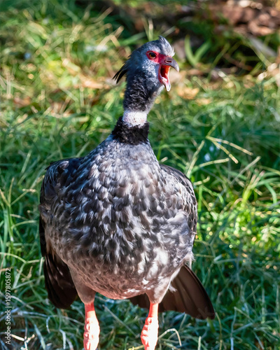 Helmeted Guineafowl Walking Through Grassland
