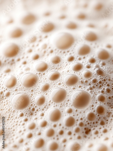 hemp milk concept. Close-up of frothy bubbles on a creamy surface.