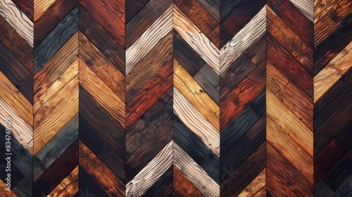 Herringbone wood pattern background with rich, warm tones creating a rustic and vintage feel for interior design and decorative purposes.
