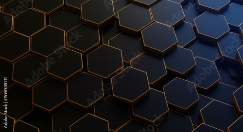 Hexagon Grid Dark Surface with Golden Edges Abstract Design