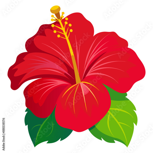Hibiscus A vibrant hibiscus flower with striking red petals and a prominent yellow stamen set against a plain white background.