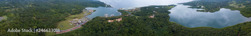 High angle aerial 360 panorama of the Parrot Tree area of Roatan, Honduras.