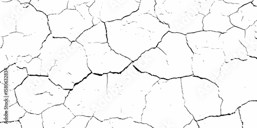 high contrast black and white image of a cracked white wall with cracks and damaged texture, creating an abstract and distressed background look