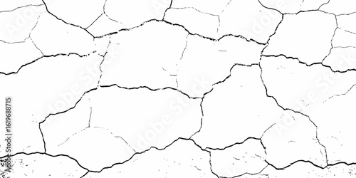 high contrast image showing a cracked surface with a complex network of fissures, creating a textured and abstract pattern
