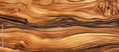 High definition olive wood texture showcasing rich caramel and dark brown streaks with smooth, wavy patterns on a horizontal surface.