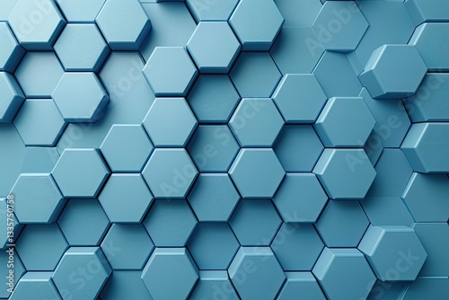 High Definition View of 3D Rendering, Blue Hexagonal Backgroundhigh Detail, 8K
