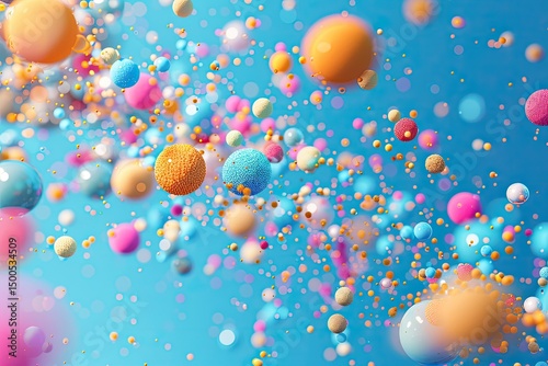 High Definition View of Colored Particles with Blue Background, 3D RenderingHigh Detail, 8K