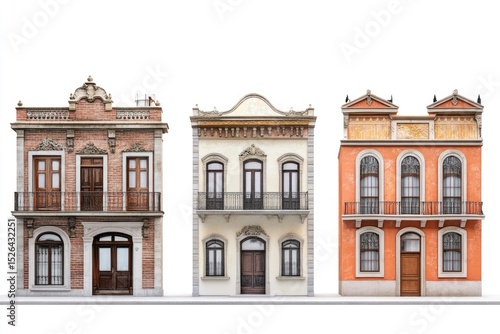 High Definition View of Unique Street Architecture Isolated on White Background, Depth of Field