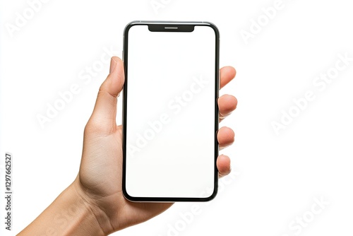 High Definition Visual of the Hand Hold the Smartphone with Isolated Screen on White Background
