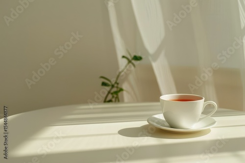 High Detail Image of a Cup of Tea Sits on a White Table