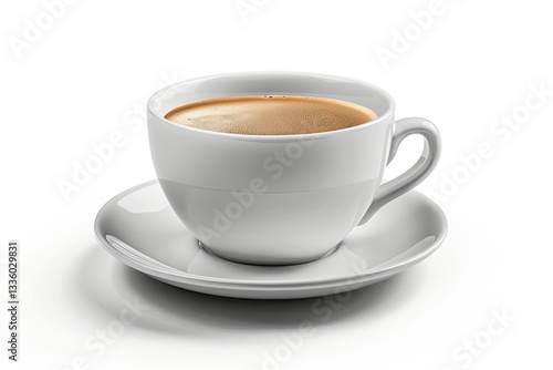 High Detail Image of White Cup of Coffee Isolated on the White Background